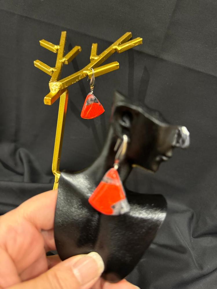 حلق اللافا قطعة فنية مستوحاة من ألوان الحمم البركانية النارية، اقراط اذن نسائية باللون الأحمر والبرتقالي والأسود في تصميم فريد. كل قطعة مصنوعة يدويًا من الطين الحراري ومغطاة بطبقة ريزن عالية الجودة لإطلالة ملفتة لا تُنسى.